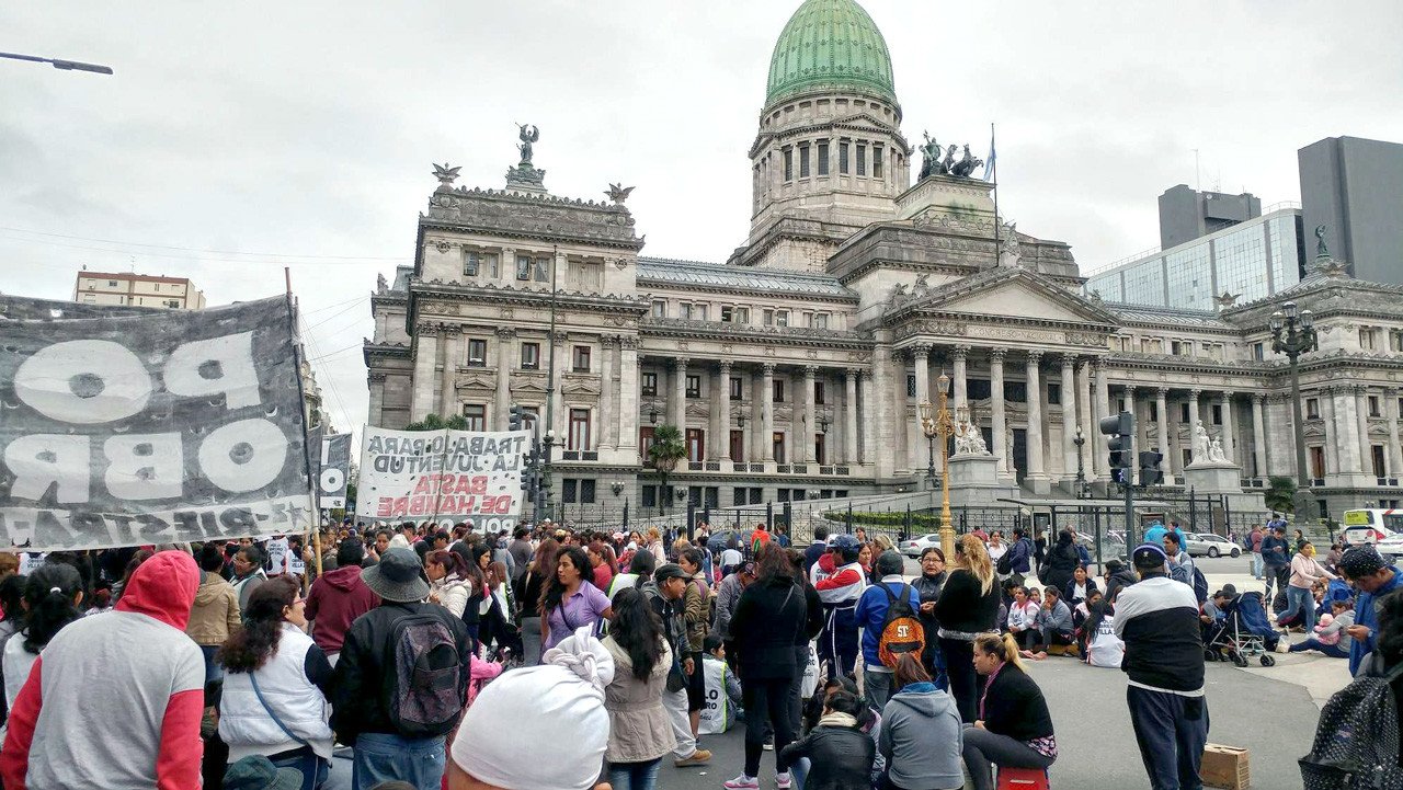 En una multitudinaria convocatoria, distintas agrupaciones de izquierda se concentraron este miércoles frente al Congreso Nacional, en la ciudad de Buenos Aires, en reclamo por la falta de programas sociales y aumento de la indigencia en la provincia del mismo distrito.