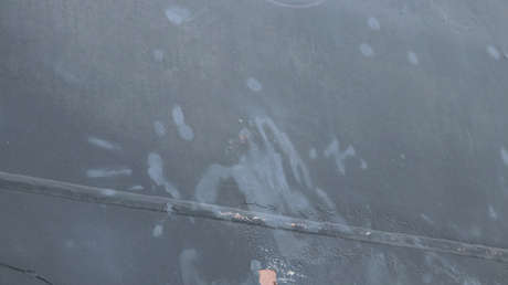 Asimismo, se compartió la fotografía de un agujero en el casco del tanquero que —de acuerdo con el Pentágono— fue producto de la explosión de otra mina.