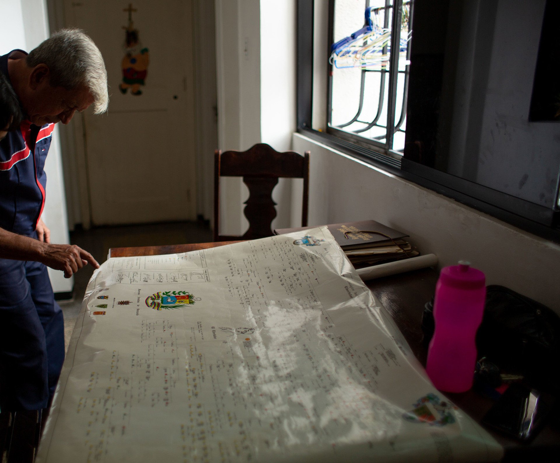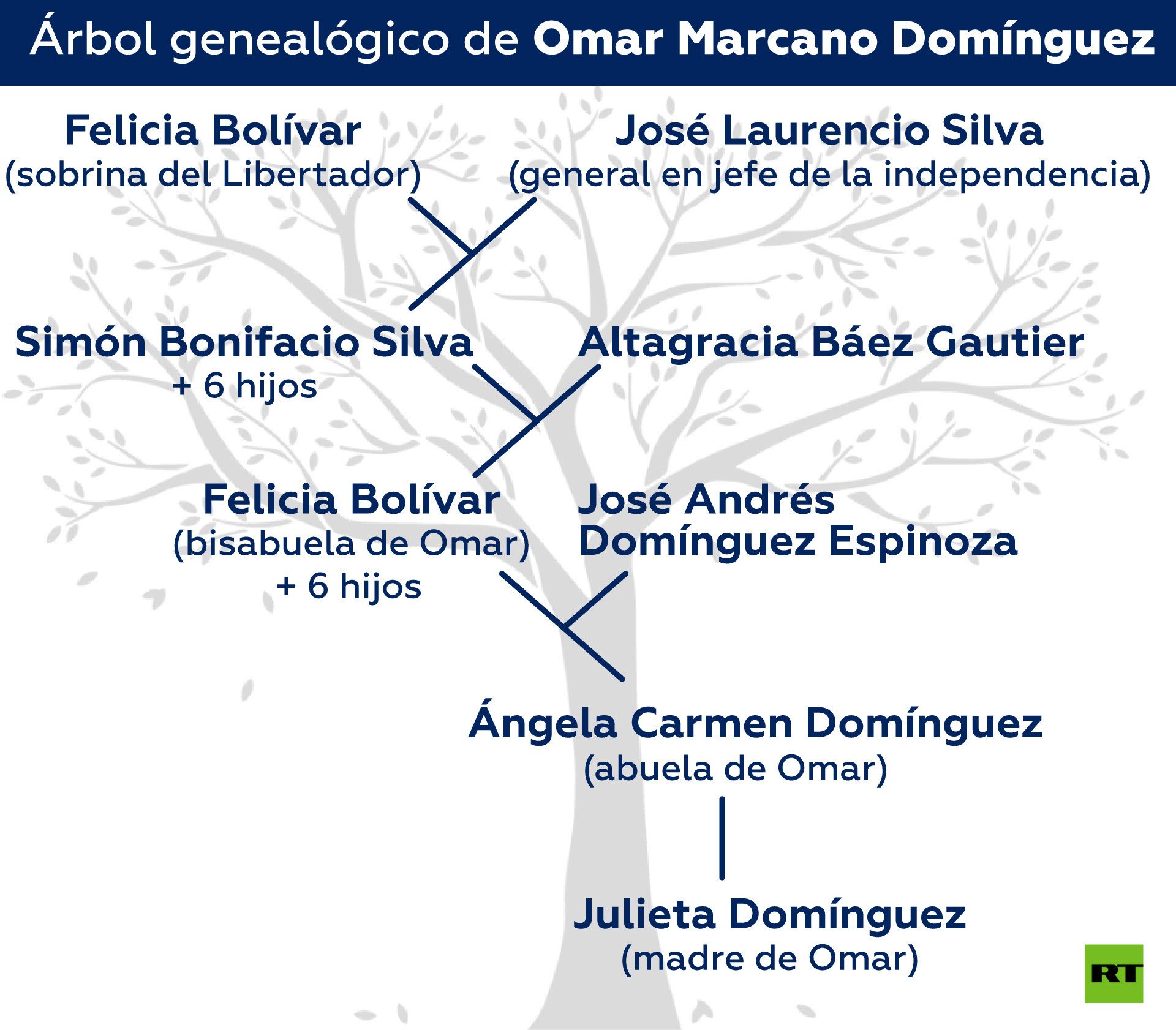 En un extenso afiche extendido en la mesa de su casa, en Caracas, Omar Marcano Domínguez recorre con la yema de su dedo la intrincada línea de sucesión que lo une a Simón Bolívar, el Libertador de cinco naciones americanas. Es su sobrino quinto nieto.