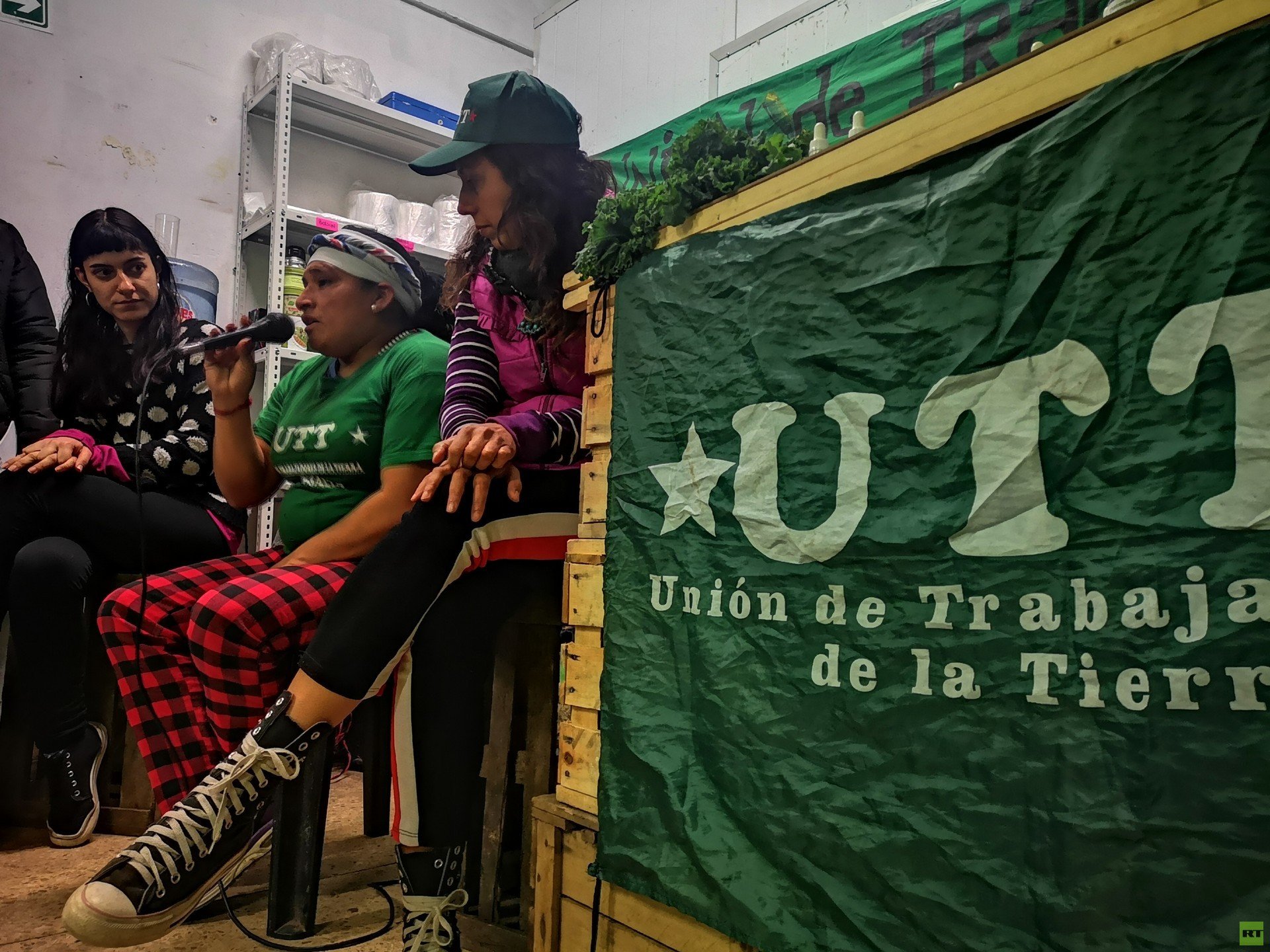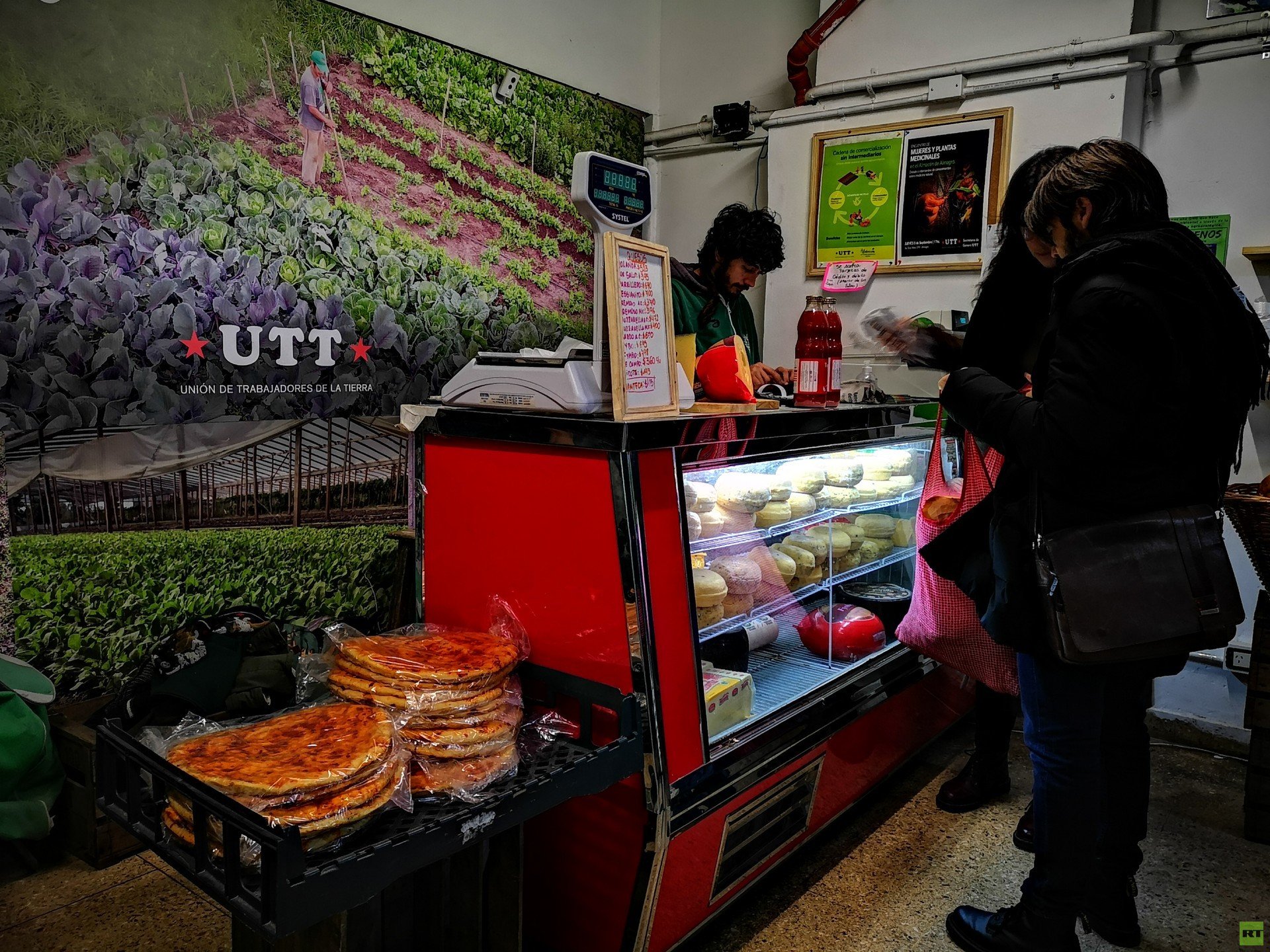 "Somos el gremio de los trabajadores de la tierra, somos una organización de masas, de miles y miles", dice Nahuel Levaggi, coordinador nacional. Lo cuenta a RT sentado en un banquito mientras toma mate y come una pizza hecha por y para los compañeros y compañeras. Estamos en el Almacén de la UTT del barrio de Almagro, en Ciudad de Buenos Aires. A unos metros, pilas de cajones con verduras, huevos envueltos en papel de diario y yerba de una cooperativa del interior esperan clientes que llegan del barrio y de un poco más lejos también.