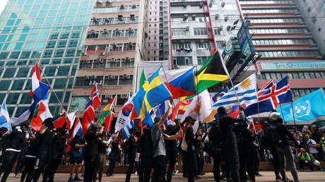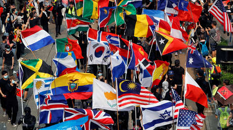 El domingo los manifestantes ondearon las banderas de al menos una decena de otros países en un aparente intento de unirlos a su causa en la lucha contra la dependencia de Pekín. Así, en Hong Kong se pudo ver las banderas de Alemania, España, Australia, India, Polonia, Uruguay, Jamaica, Ucrania y hasta de la ONU, y de naciones como Timor Oriental y Botsuana.