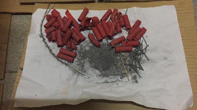 La Policía publicó fotos de los objetos descubiertos durante la redada, que incluyen trajes de armadura, armas de cuerpo a cuerpo, así como productos químicos y botellas de vidrio utilizadas en la fabricación de bombas de gasolina, un arma utilizada con frecuencia por manifestantes durante los choques con las fuerzas del orden.