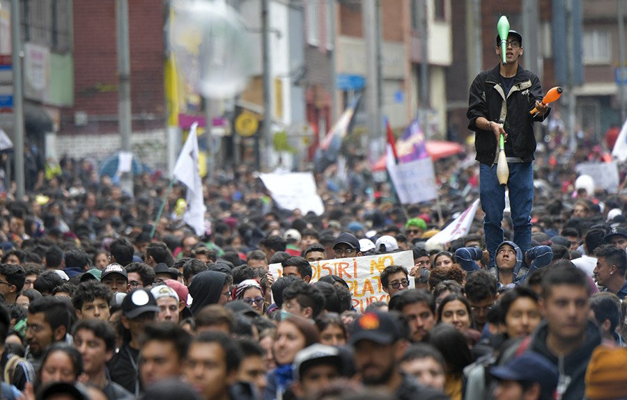 Este jueves colectivos universitarios colombianos realizan una movilización nacional en rechazo a la corrupción, la represión de los antimotines contra las protestas estudiantiles y en reclamo del "cumplimiento integral" de los acuerdos firmados con el Gobierno a finales del año pasado.