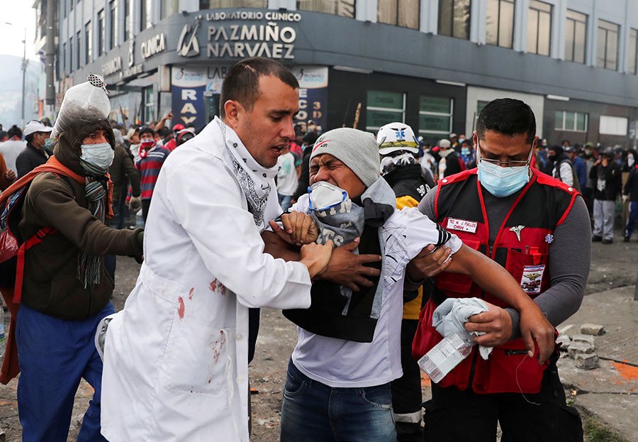 Más temprano se habían registrado enfrentamientos alrededor del Parlamento y cerca del Hospital de Especialidades Eugenio Espejo, un grupo de manifestantes se enfrentó a las fuerzas de seguridad.