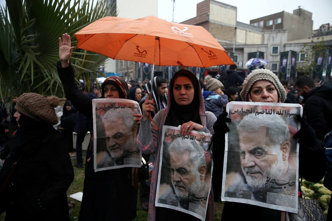 Los participantes, vestidos de negro y muchos llorando, llevaban las fotografías de los hombres junto a las banderas de Irak y las del grupo chií Hezbollah. Durante la ceremonia, los dolientes cantaron "No, no, Estados Unidos" y "Muerte a Estados Unidos, muerte a Israel" mientras llevaban los ataúdes de Soleimani y Abu Mahdi al-Muhandis, informa AP.