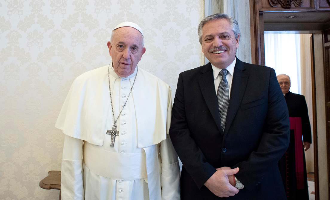 El 31 de enero Fernández se reunió con su compatriota, el papa Francisco, quien lo recibió en la Biblioteca del Palacio Apostólico del Vaticano. El encuentro con el líder católico, también de pasado peronista, duró 44 minutos, y antes del diálogo se observaron algunas risas y otros gestos de camaradería.