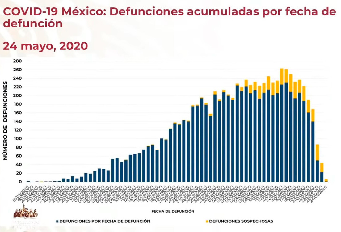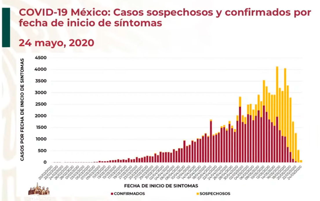 Esto, aún cuando la gráfica presentada por el Gobierno mexicano registra la fecha de inicio de síntomas, y por ello, puede presentar una variación de datos respecto al informe diario, explicó José Luis Alomía, director general de Epidemiología.