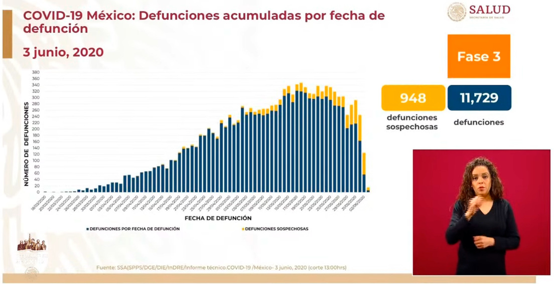 De acuerdo con el último reporte de la Secretaria de Salud, al 3 de junio, México registró un total de 11.729 fallecidos por covid-19 y un total de 101.238 casos confirmados.