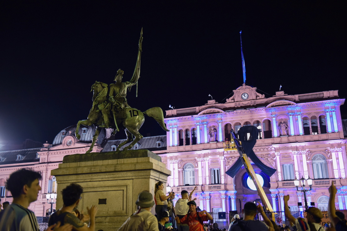 Adentro de la Casa Rosada habita un dolor discreto. Afuera, en cambio, hay bocinazos, aplausos, cantos, gritos, bombos, bengalas. El duelo popular se expande a lo largo de Buenos Aires.