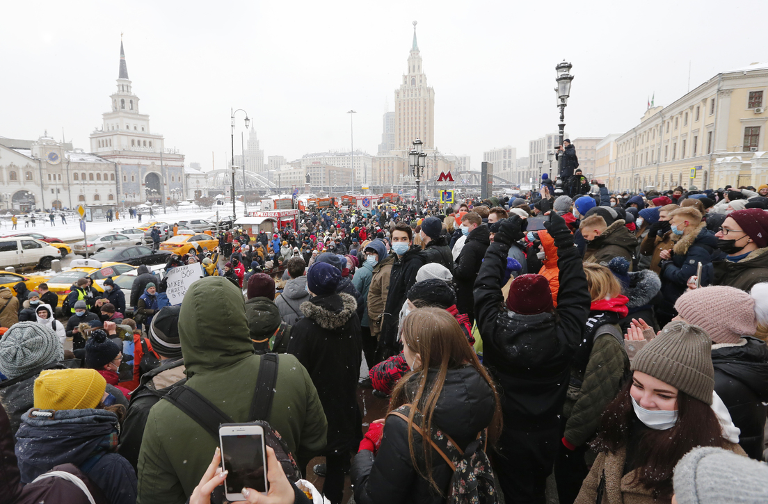 Tras reunirse en la estación de Sújarevskaya, una multitud llegó a la plaza de Komsomólskaya, también conocida como 'la plaza de las 3 estaciones de tren', y desde allí se dirigió hacia la prisión Matrósskaya Tishiná, en la que de momento se encuentra Navalny.