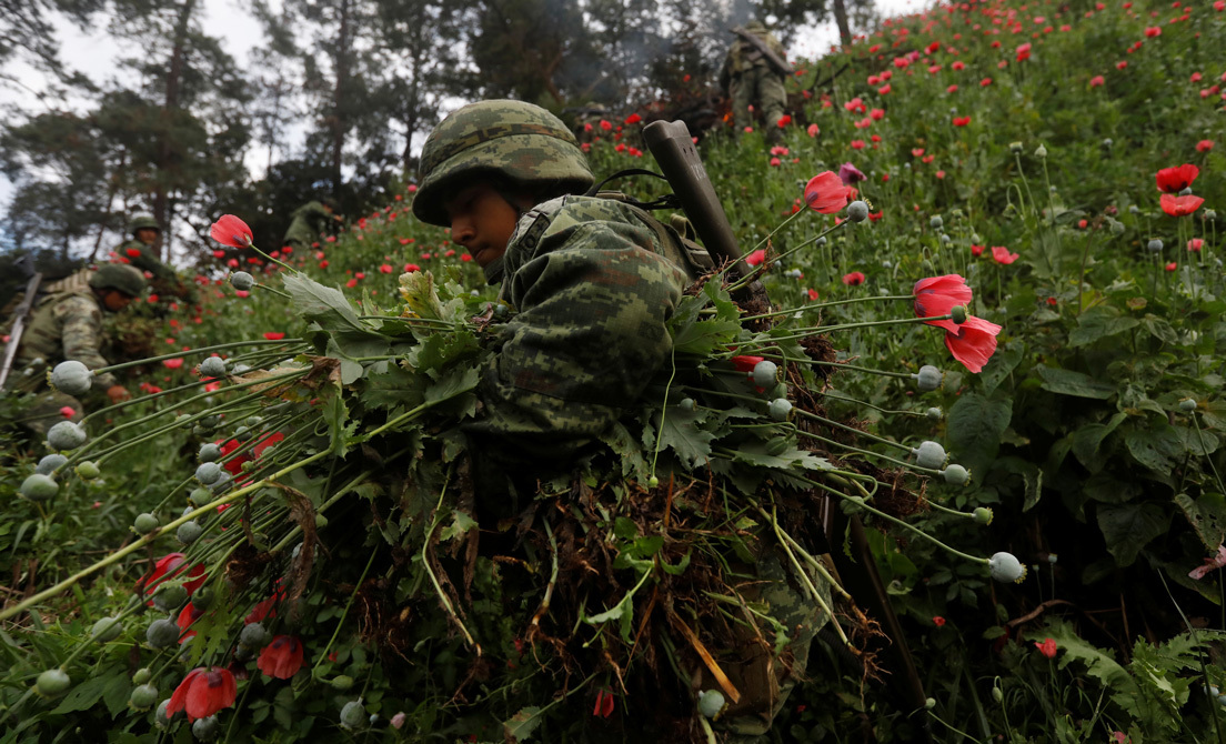 Por ello es que México fabrica de manera ilegal el 6,0 % de opio a nivel mundial, lo que lo convierte en el tercer país productor después de Afganistán (líder absoluto con el 84 %) y Myanmar. Y más del 80 % de la producción mexicana se trafica a EE.UU., que ya ha padecido varias epidemias por consumo de drogas derivadas del opio, principalmente la heroína. La más nueva se debe al fentanilo, un peligroso opioide sintético.