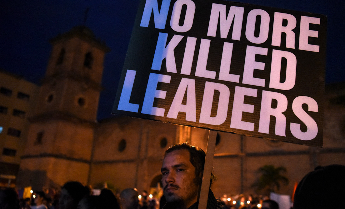 El asesinato de los líderes sociales se ha vuelto una constante en Colombia. Con regularidad, los grupos de defensa de los derechos humanos y las comunidades afectadas denuncian el homicidio de algún luchador comunitario por parte de desconocidos pertenecientes a grupos armados ilegales en disputa.
