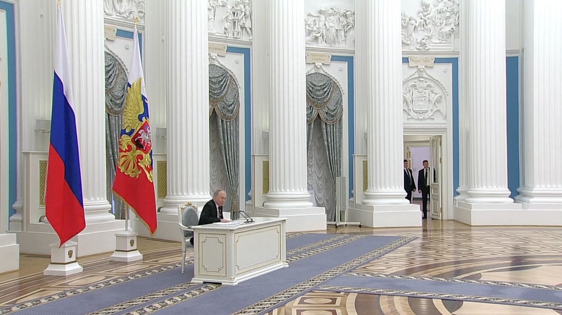 Al principio de la sesión, el mandatario destacó que "nadie discute" que un golpe de Estado armado ocurrió en 2014 en Ucrania, que no fue reconocido por algunas regiones del país, dando origen a la formación de las autoproclamadas repúblicas populares de Donetsk y Lugansk. Desde entonces, Rusia hizo todo lo posible para solucionar el conflicto de manera pacífica, mientras "Kiev ha estado maltratando a la gente que vive allí a lo largo de todos estos años", afirmó Putin, agregando que las autoridades en Kiev "no tienen intención de implementar los acuerdos de Minsk".