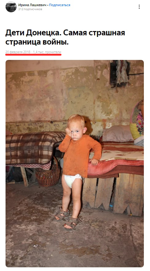 Además, el material fotográfico estaba en la cuenta personal de Lashkevich en el portal Yandex.Dzen. Sin embargo, el contenido fue eliminado. El perfil de la periodista cambió de nombre y pasó a llamarse 'Alexéi Petrov'. No obstante, el archivo con los niños en el sótano de Donetsk se guardó en la caché y se puede acceder a él a través de un enlace.