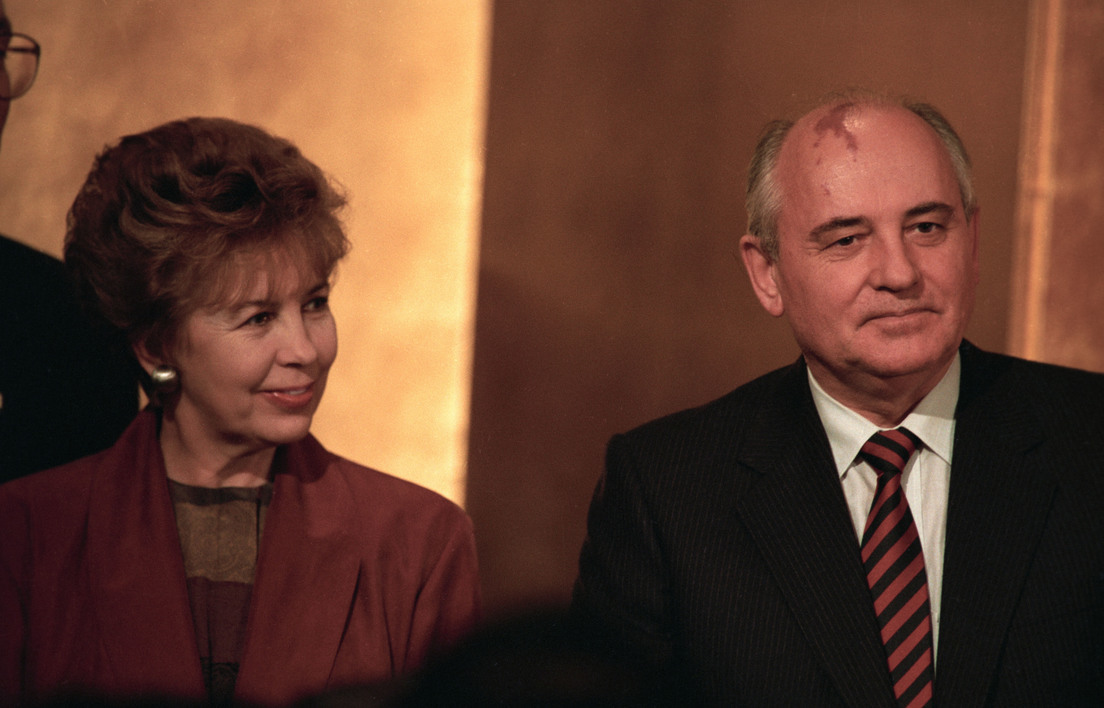 En cuanto a su esposa, Raísa Gorbachova, fue proclamada en 1987 como "mujer del año" por la revista británica Woman's Own, mientras que la fundación Together for Peace la galardonó con el premio Mujer por la Paz. En 1991 recibió el premio Lady of the Year. Su personalidad y estilo dinámico atrajeron el interés y la atención de los observadores y medios occidentales. En el papel de mensajera de la paz que apoyaba la política innovadora de su marido, destacó por sus generosas contribuciones para la atención de los niños enfermos de leucemia. Durante muchos años patrocinó el Hospital Central Infantil de Moscú así como la Asociación Internacional de Hematólogos del Mundo para los Niños, ayudando, asimismo, a introducir técnicas modernas para el tratamiento de la leucemia infantil.