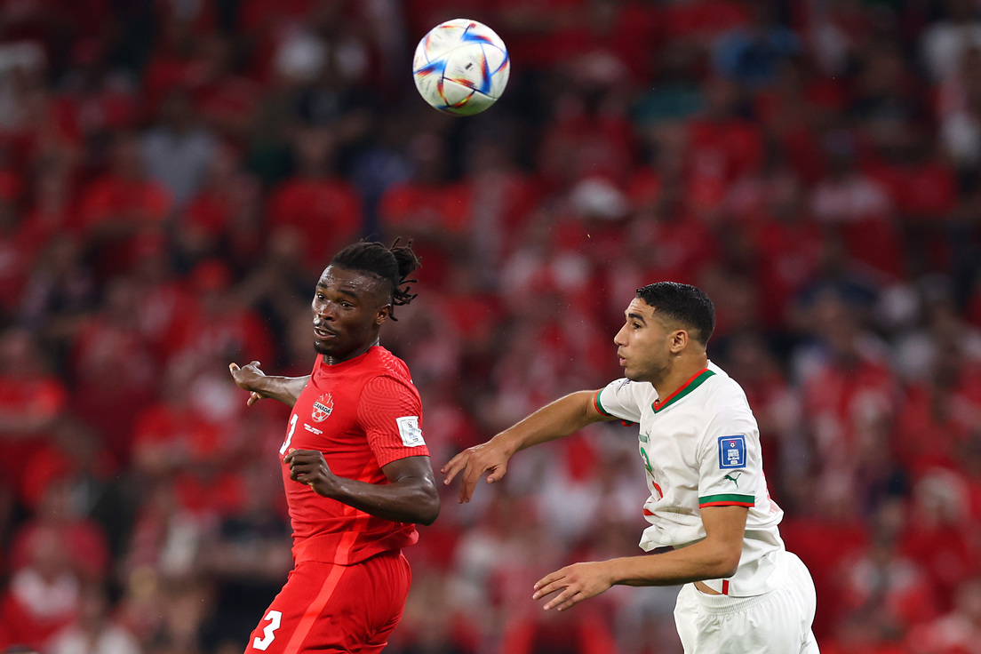 Marruecos anotó un gol tempranero gracias a un certero disparo de Hakim Ziyech a los 4 minutos de partido, que aprovechó un error garrafal de la defensa rival y el guardameta Milan Borjan. Minutos después, a los 23', los 'leones del Atlas' consolidaron su dominio y Youssef En-Nesyri marcó la segunda anotación de su equipo. No obstante, los canadienses descontaron tras un autogol de Nayef Aguerd.