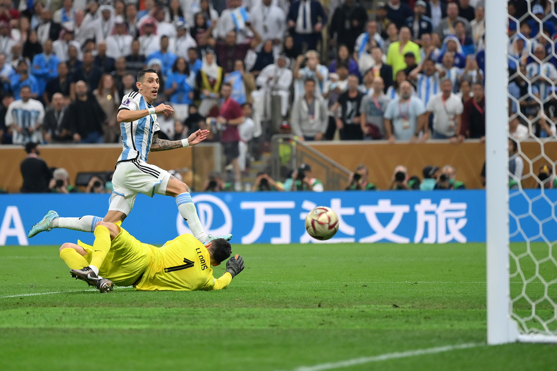 Ya en el minuto 35, Lio filtró una bola para dejar de frente a la portería a Di Maria, oportunidad que el Fideo no desaprovechó y definió de izquierda ante la salida del guardameta Lloris, ampliando la ventaja para los argentinos.
