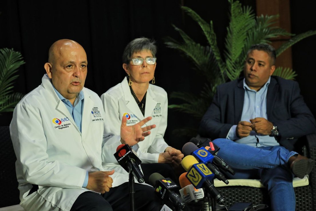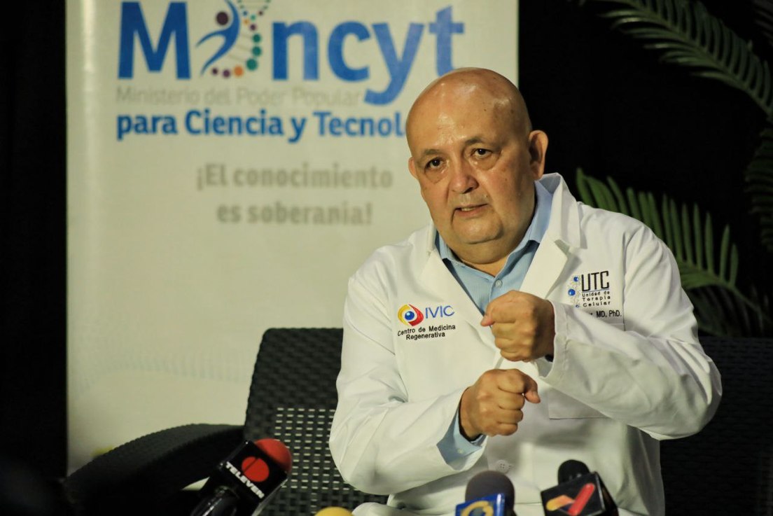 Este avance científico fue revelado durante una rueda de prensa ofrecida en la sede del Ministerio de Ciencia y Tecnología, en Caracas, en la que participaron el viceministro de Aplicación del Conocimiento Científico y director del Instituto Venezolano de Investigaciones Científicas (IVIC), Alberto Quintero, y el jefe y la subjefa de la Unidad de Terapia Celular del Centro de Medicina Regenerativa, José Cardier y Olga Wittig, respectivamente.
