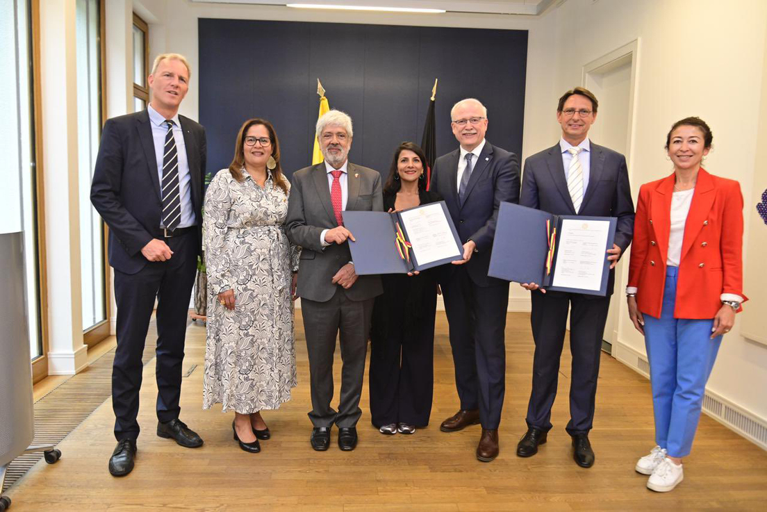 Como parte de esta visita, los ministros de Minas y Energía, Irene Vélez, y de Comercio, Germán Umaña, firmaron un memorando de entendimiento con la Sociedad Fraunhofer - Instituto Hidrógeno, una organización de investigación que comprende varios institutos especializados en las ciencias aplicadas.