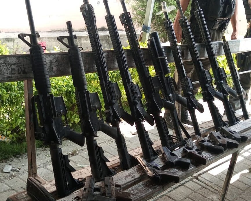 Militares y Policías encontraron un arsenal de guerra al interior del Centro de Privación de Libertad (CPL) Guayas No. 1, también conocido como Penitenciaría del Litoral o 'La Peni', ubicada en la ciudad de Guayaquil, donde un motín, que se extendió por tres días, dejó un saldo de 31 prisioneros asesinados.