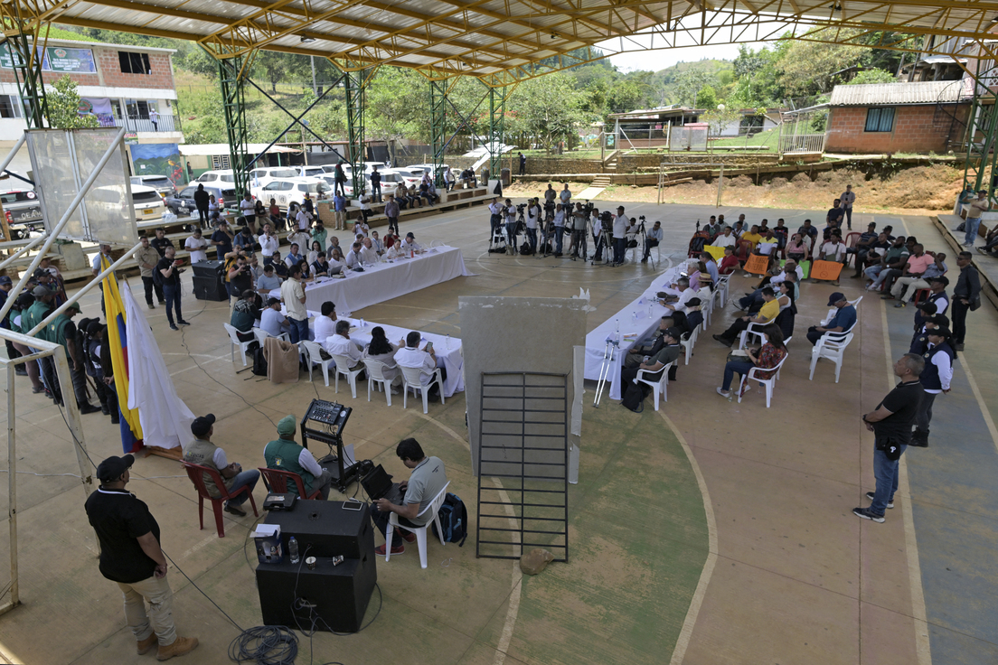 En el evento, las autoridades, encabezadas por el alto comisionado para la Paz, Danilo Rueda, y del jefe negociador, Camilo González Posso, anunciaron la suspensión de operaciones militares del Ejército y la Policía contra el EMC de las FARC, que estaba representado por 'Andrey Avendaño'.