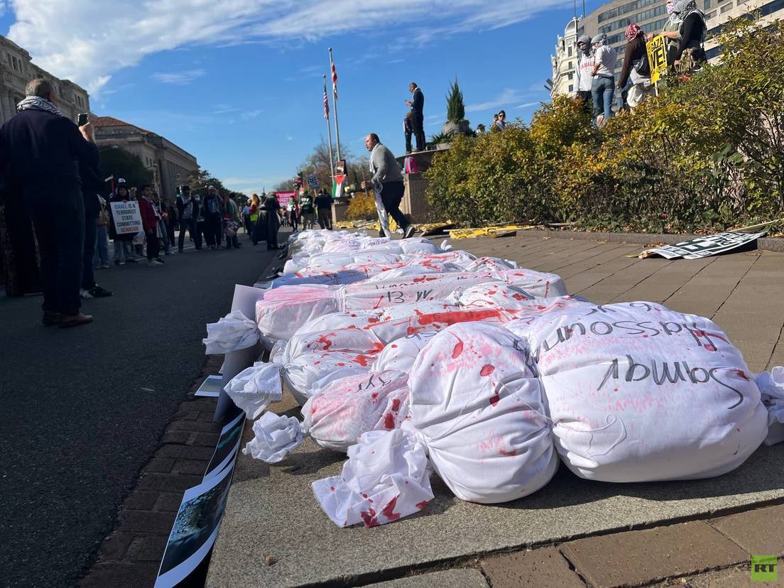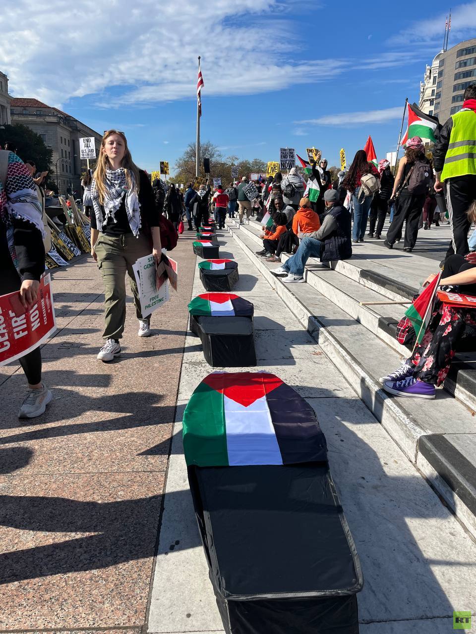 🇵🇸 Miles de manifestantes protestan en Washington para exigir el levantamiento del asedio a GazaLos participantes exponen fotografías de niños palestinos asesinados en bombardeos israelíes y responsabilizan al Gobierno estadounidense del conflicto en Gaza. pic.twitter.com/fyW5emjfQH