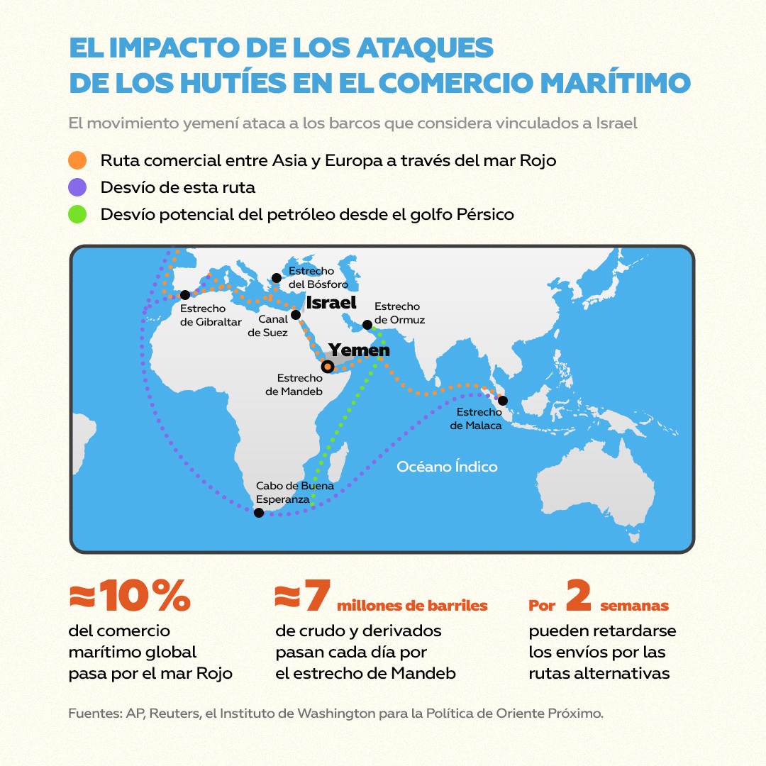 - Los ataque hutíes en la parte sur del mar Rojo han perturbando el comercio mundial, amenazando con desencadenar un nuevo episodio de inflación global a medida que se disparan las tarifas del transporte marítimo.