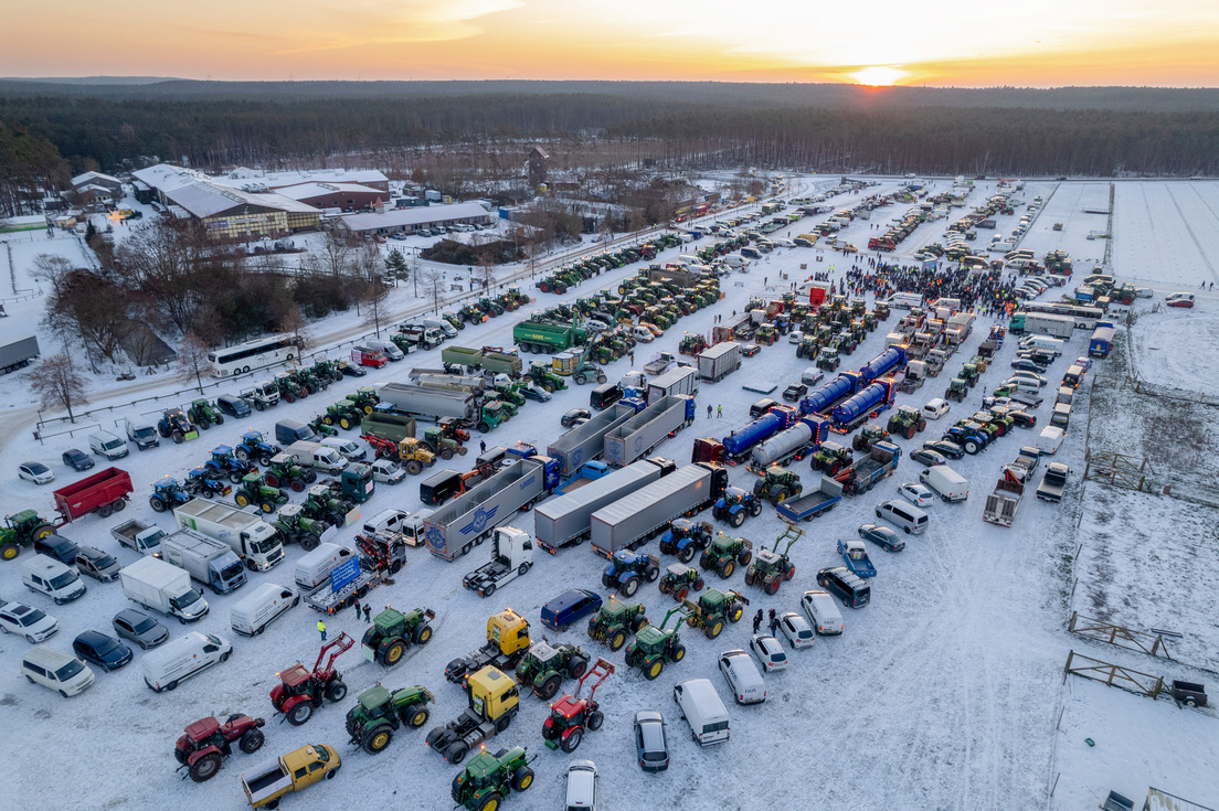 Se informa que frente a la Puerta de Brandeburgo de Berlín ya se han concentrado unos 550 vehículos agrícolas, entre ellos 200 tractores, 100 camiones, 100 coches y unas 100 furgonetas. Se espera que el tráfico en toda la ciudad se vea gravemente obstaculizado.