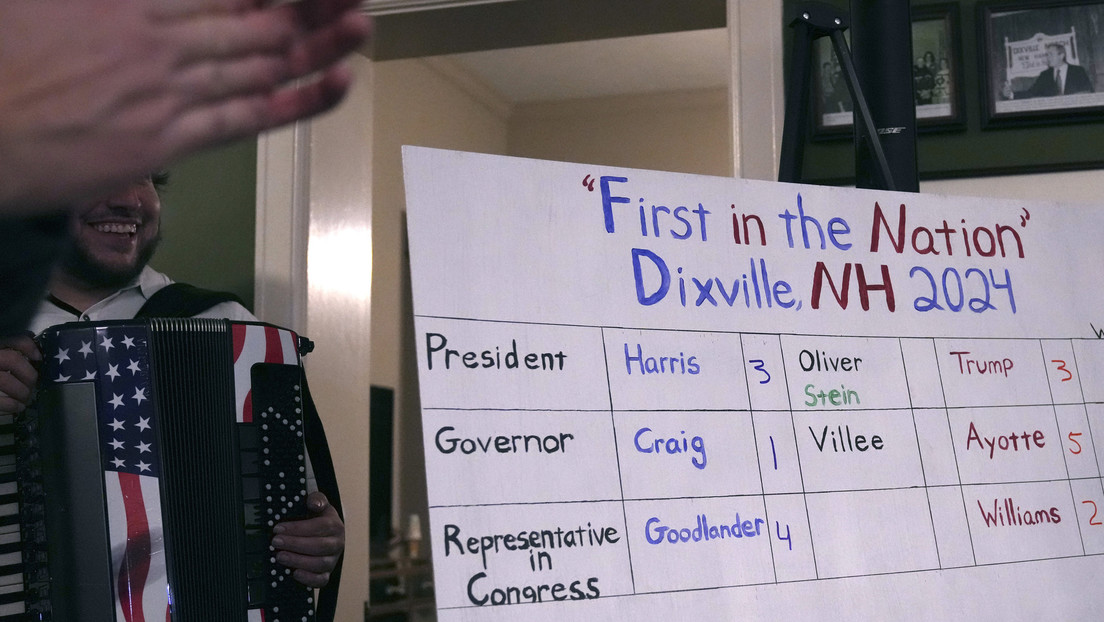 En Estados Unidos se ha dado a conocer el veredicto de los primeros votantes de la jornada electoral, que acudieron a las urnas en una pequeña localidad del estado de Nuevo Hampshire. Donald Trump y Kamala Harris han empatado en Dixville Notch, donde recibieron tres votos cada uno de un total de seis votantes.