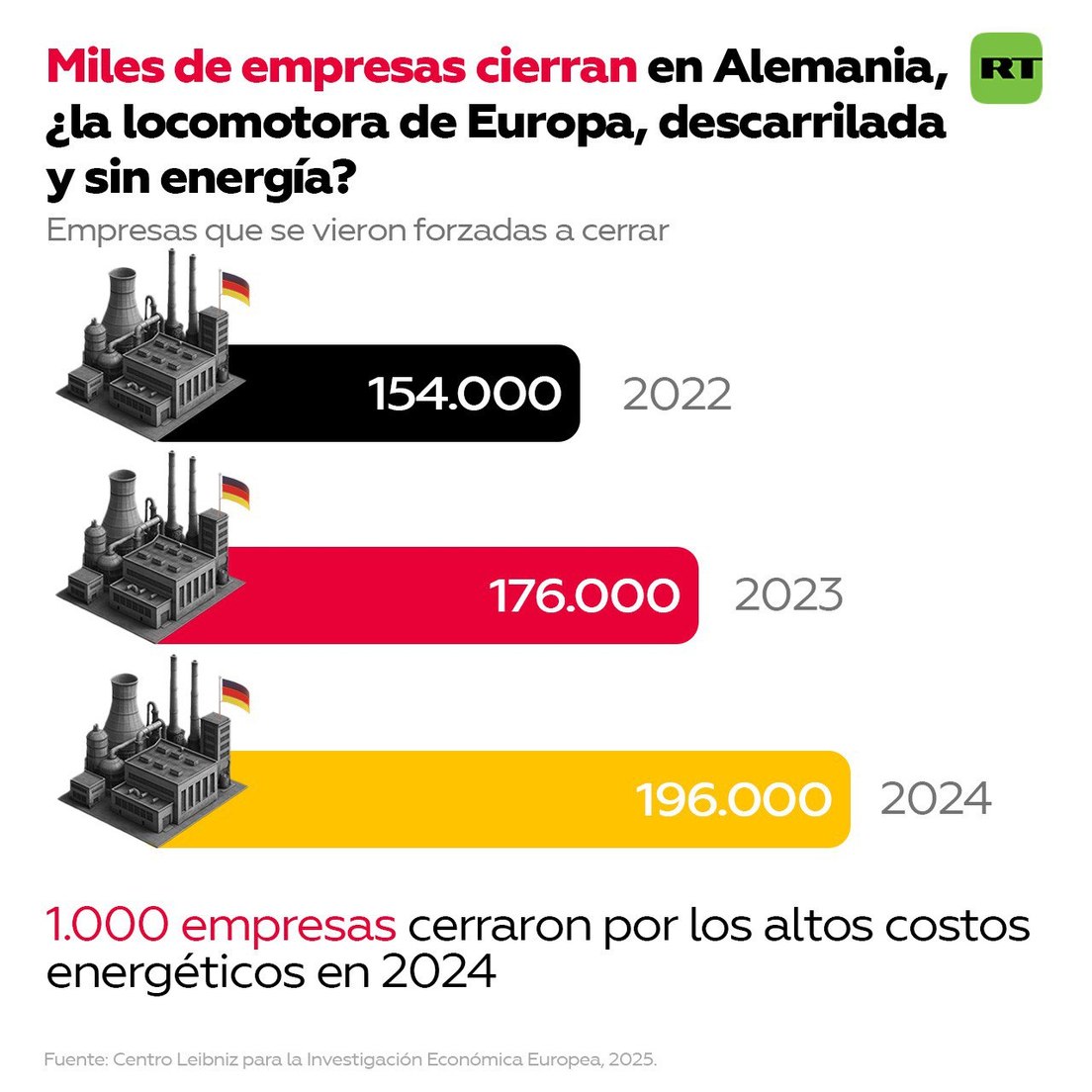 - Alemania también se prepara para un aumento continuo de insolvencias importantes a lo largo de 2025 e incluso en 2026, tras un desastroso 2024 cuando se registró un número récord de quiebras.