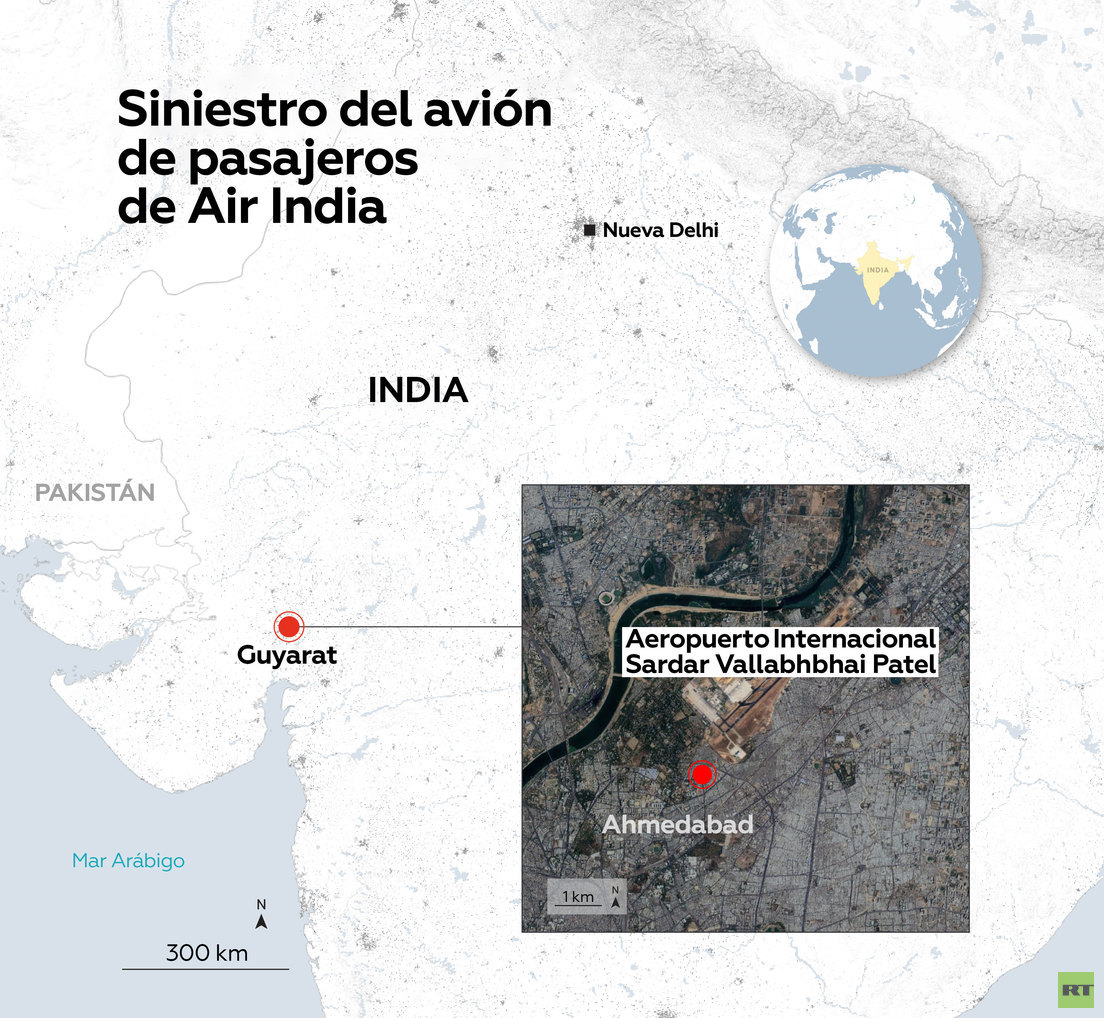 El accidente ocurrió cuando la aeronave Boeing 787 Dreamliner despegaba. El avión se dirigía a Londres. "El vuelo AI171, que operaba la ruta Ahmedabad-Londres Gatwick, se vio involucrado en un incidente hoy, 12 de junio de 2025. Actualmente estamos verificando los detalles y compartiremos más actualizaciones lo antes posible", comunicó Air India.