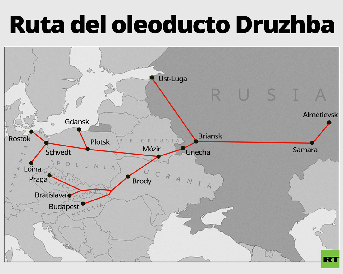 La rama sur del oleoducto Druzhba, que atraviesa Ucrania, transporta crudo ruso hacia Hungría y Eslovaquia, mientras que el ramal norte, que abastecía a Polonia y Alemania, fue cerrado por las sanciones europeas.