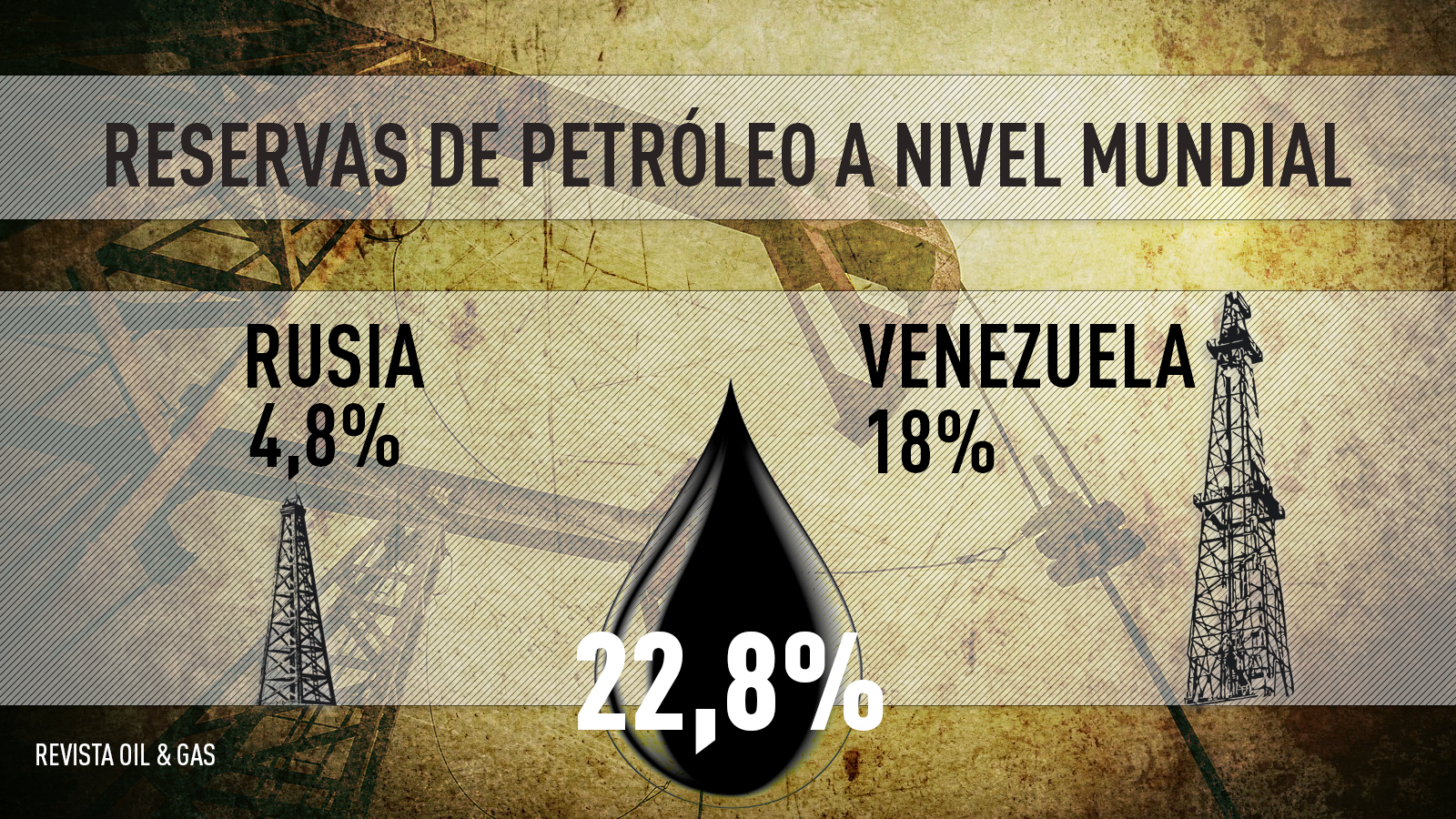 Venezuela pasa por ser la principal reserva de petróleo convencional del planeta, ya que dispone de 298.400 millones de barriles (el 18% del crudo a nivel mundial). Por su parte, Rusia cuenta con 80.000 millones de barriles o el 4,8% de reservas mundiales. Juntos, ambos países poseen una cuarta parte de las reservas mundiales.