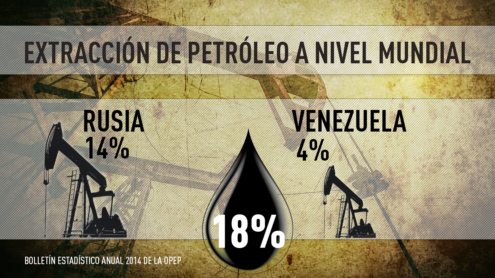 Rusia lidera en el ámbito de la extracción del crudo con 10.147 millones de barriles diarios o el 14% del total a nivel mundial. Venezuela extrae 2.790 millones de barriles diarios o el 4%. Juntos producen 12.937 millones de barriles (el 18% del total).