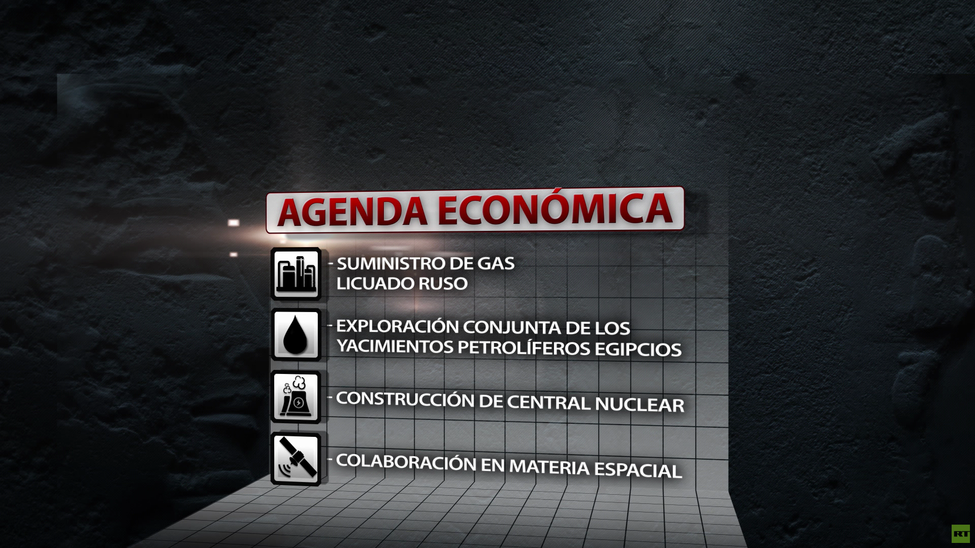 En la agenda económica figura también el suministro de gas licuado ruso a Egipto, la exploración conjunta de yacimientos petrolíferos del país árabe, el inicio del comercio bilateral en sus monedas nacionales y la colaboración en el ámbito espacial.