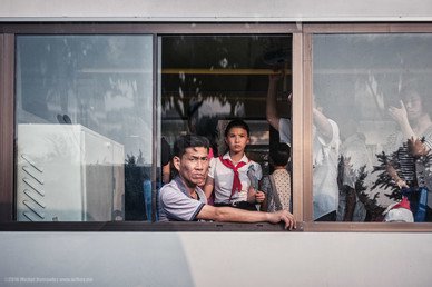 Michal Huniewicz es un fotógrafo afincado en Londres que hace poco visitó como turista la capital norcoreana, captando con su cámara la cara más sobrecogedora y presumiblemente cotidiana de la ciudad y de sus habitantes. Las imágenes muestran momentos y paisajes que los ciudadanos y autoridades norcoreanos probablemente no aceptarían que se fotografiasen.