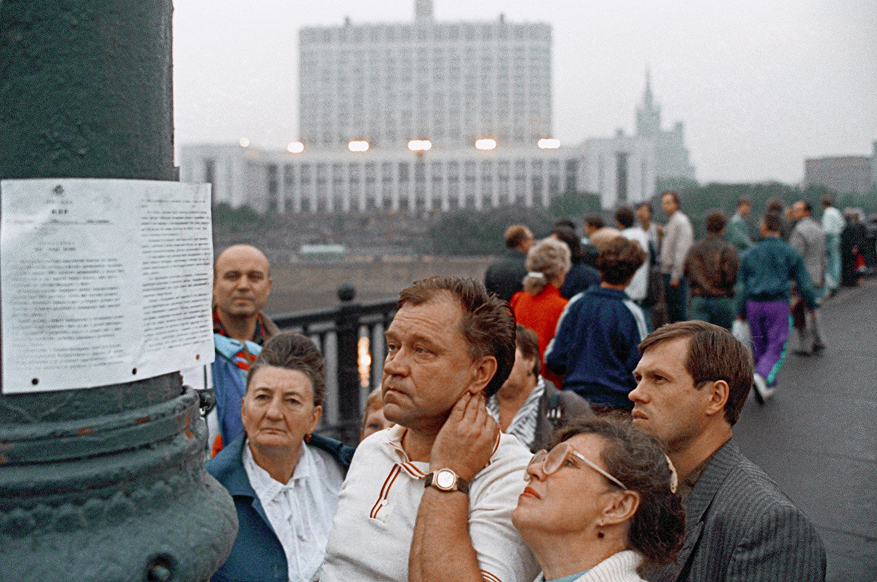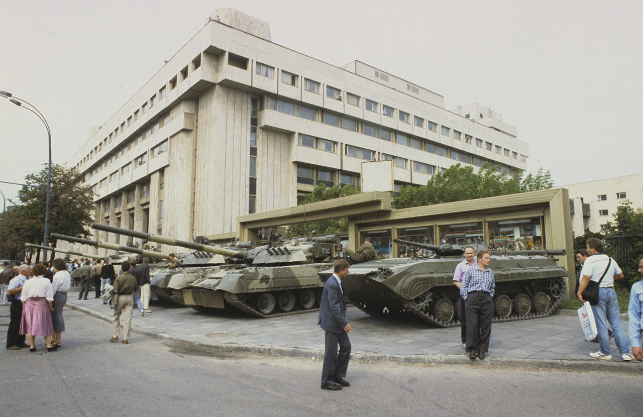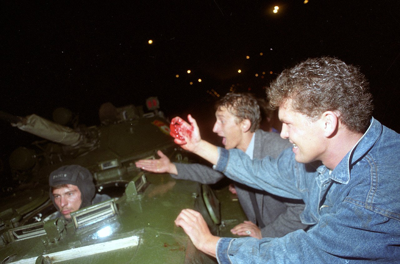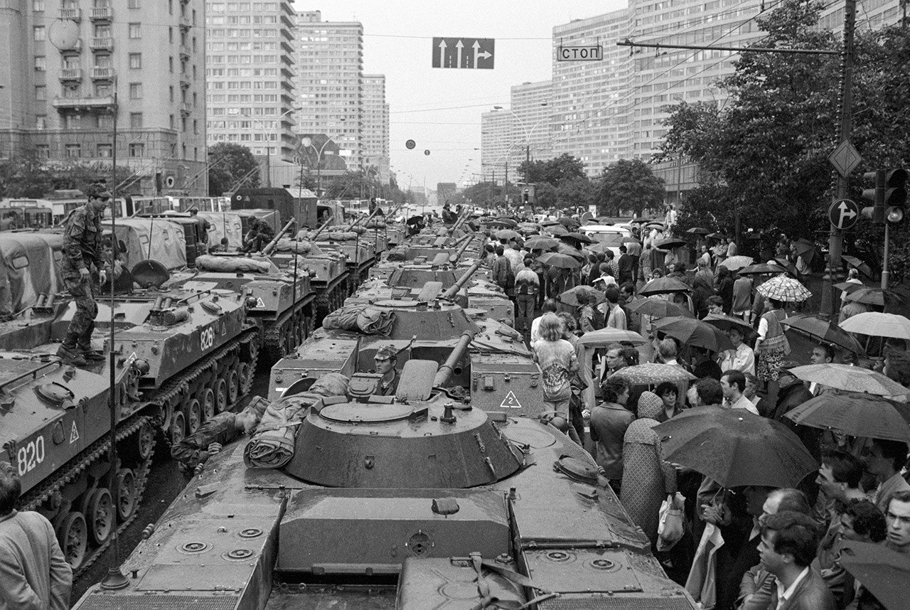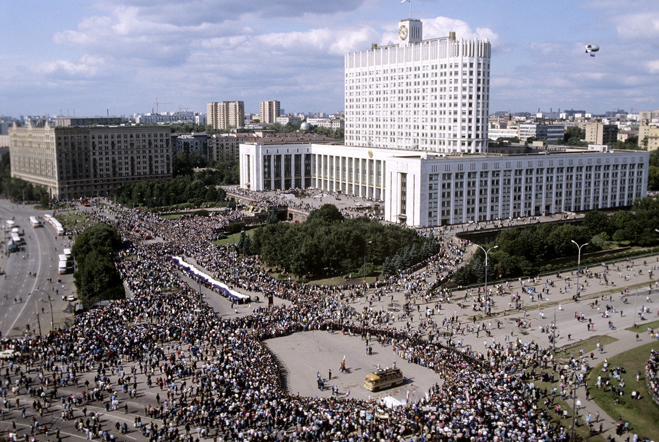 En 1991, un grupo de políticos conservadores descontentos con la política del presidente Mijaíl Gorbachov formaron el Comité Estatal para el Estado de Emergencia. Su objetivo era evitar el colapso de la URSS y acabar con Perestroika. El 19 de agosto el Comité declaró el estado de emergencia y sacó los tanques a la calle, pero los moscovitas se congregaron ante la sede del Gobierno de Rusia, la Casa Blanca, para defender la Perestroika.