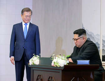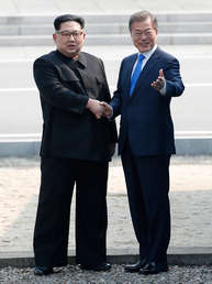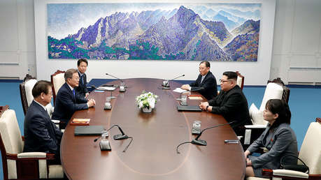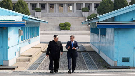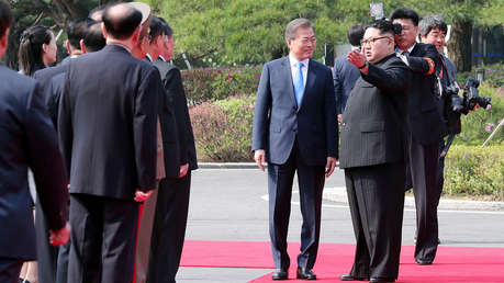 El líder de Corea del Norte, Kim Jong-un, y su homólogo del Sur, Moon Jae-in, mantienen este 27 de abril un encuentro histórico en la zona desmilitarizada entre ambos países bajo el lema 'Un nuevo comienzo para la paz'. La reunión se centrará en mejorar las relaciones bilaterales y poner fin a los actos hostiles entre el Norte y el Sur.