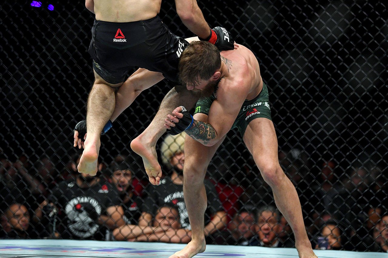 Este 7 de octubre el luchador ruso de artes marciales mixtas Khabib Nurmagomédov, derrotó a su rival irlandés Conor McGregor con un 'mataleón' y defendió su cinturón de los pesos ligeros de la UFC. La histórica y polémica pelea acaparó la atención mundial e inesperadamente desembocó en otra. Tras la victoria, Khabib saltó la reja que rodea el octógono y atacó a los integrantes de la esquina de McGregor, por lo cual no hubo entrega de cinturón en público.