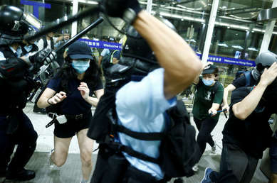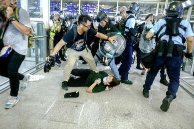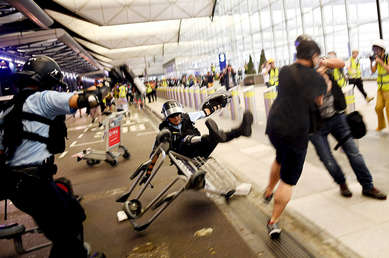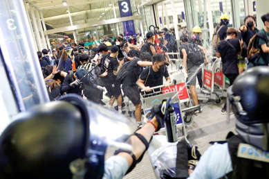 Duros choques entre los manifestantes y la Policía en el aeropuerto de Hong Kong