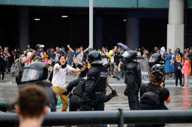 Tras conocerse este lunes la sentencia contra nueve líderes independentistas catalanes, que se enfrentan a entre 9 y 13 años de prisión por su participación en el 'procés', miles de personas han tomado el aeropuerto El Prat de Barcelona, mostrando su desacuerdo con el fallo emitido por el Tribunal Supremo de España. Al menos se han registrado 37 heridos, mientras cien vuelos fueron cancelados por los enfrentamientos entre los Mossos d’Esquadra (la Policía local de esa región) y manifestantes.