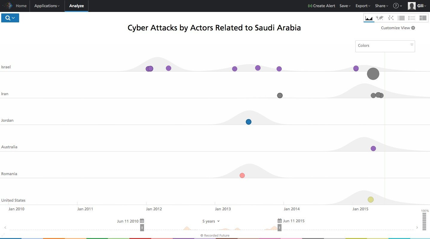 Como se desprende de las imágenes, se deduce que hubo más ataques de Irán que al revés, pero muchos de los ataques virtuales realizados por Estados Unidos contra Irán han sido en momentos sensibles en la relación entre los Ayatolas y Arabia Saudita. Los iraníes suelen denunciar que Arabia Saudita, tanto a nivel cibernético como bélico, deja que sus aliados hagan el "trabajo sucio". En 2010 se desarrolló la Operación Olympic Games. Fue llevada a cabo por Estados Unidos e Israel y desactivó mil centrifugadoras para el enriquecimiento de uranio en la central de Natanz (Irán) a través del virus informático Stuxnet.