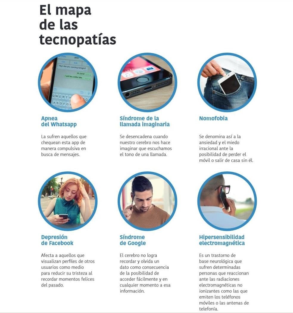 De acuerdo con este informe, un 'me gusta', un tuit o un emoticono pueden provocar "una sensación de conectividad" que ayuda a aliviar la sensación de soledad, pero en ocasiones aumentan el riesgo de padecer patologías físicas, como enfermedades inflamatorias y auditivas, jaquecas y mareos o trastornos psicológicos. Estas denominadas tecnopatías aún se encuentran a medio camino entre las dolencias reconocidas y las manías personales, pero los especialistas que han elaborado el documento opinan que terminarán por consolidarse como enfermedades.