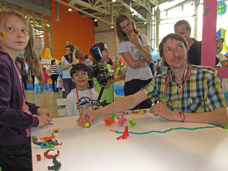 Los visitantes han podido aprender animación con plastilina de la mano del maestro Alexey Pochivalov, quien trabaja en el Estudio Pilot y es uno de los principales animadores de 'La Montaña de Gemas', labor que compagina con su propio estudio Kadriki, donde da clases a niños semanalmente. "Me encanta trabajar con niños, todo esto lo hacemos para ellos y cuando conocen y se adentran en la técnica ven cómo un mundo mágico se abre ante ellos", sostiene el animador ruso.