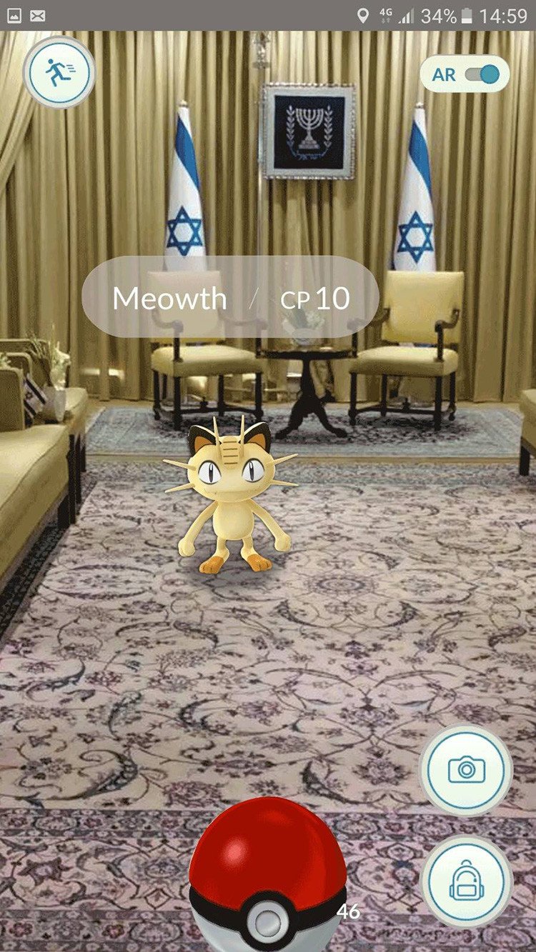 El presidente de Israel, Reuven Rivlin, ha sorprendido a los fans de Pokémon Go y al personal de seguridad de la casa oficial del gobierno israelí, pues hizo un comentario irónico al ver a un Meowth en su despacho, según la cuenta oficial en Facebook del presidente.