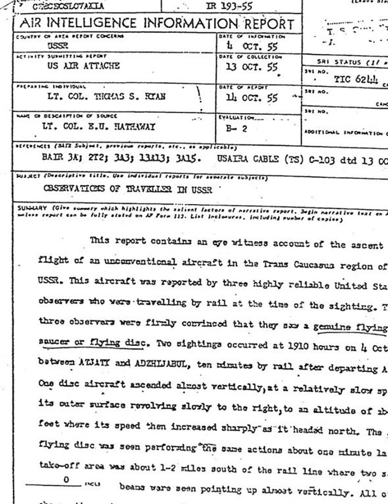 El senador sénior y expresidente del Comité de Servicios Armados de EE.UU Richard Brevard Russell elaboró justo hace 61 años este viernes un informe secreto para dejar constancia de la aparición de dos objetos volantes no identificados en la región de Transcaucasia, entonces parte de la Unión Soviética y actualmente territorio que se reparten Georgia, Armenia y Azerbaiyán.