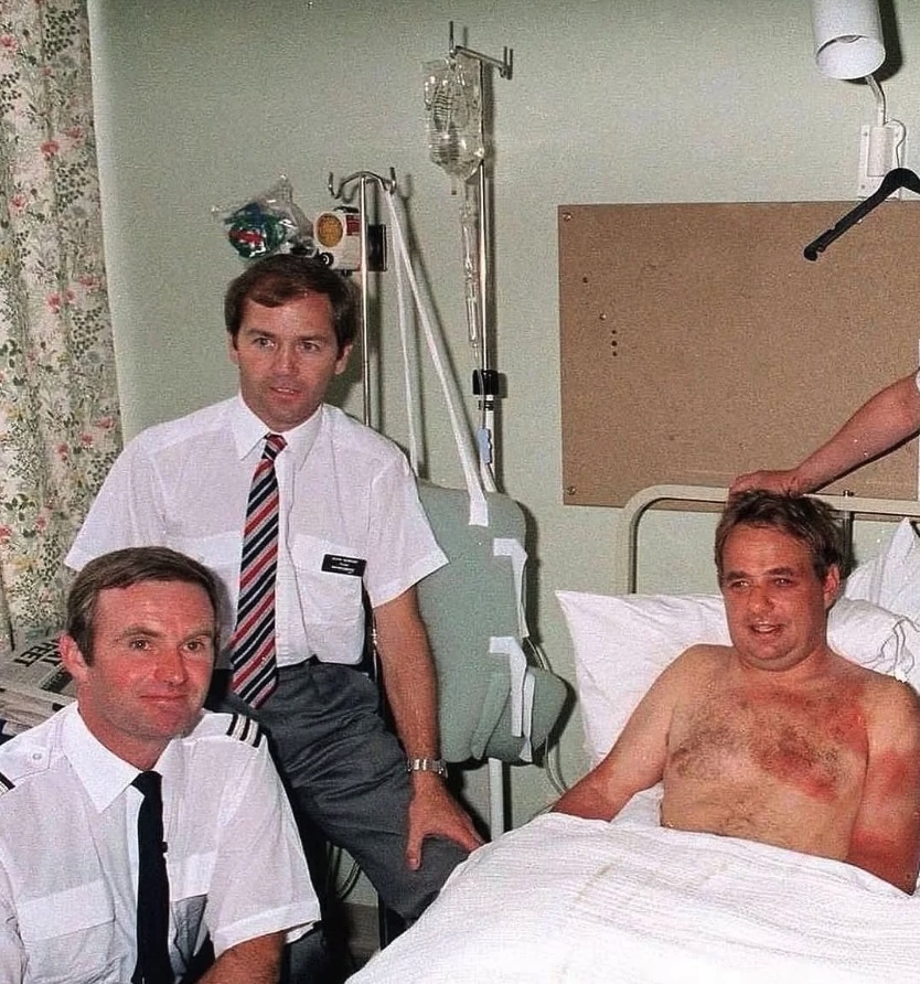 Cuando la cabina se aclaró un poco, Alistar Atcheson y Nigel Ogden, quien había entrado a ofrecer té a los pilotos, notaron que una parte del cristal del parabrisas ya no estaba y casi todo el cuerpo del capitán salía a través de él.