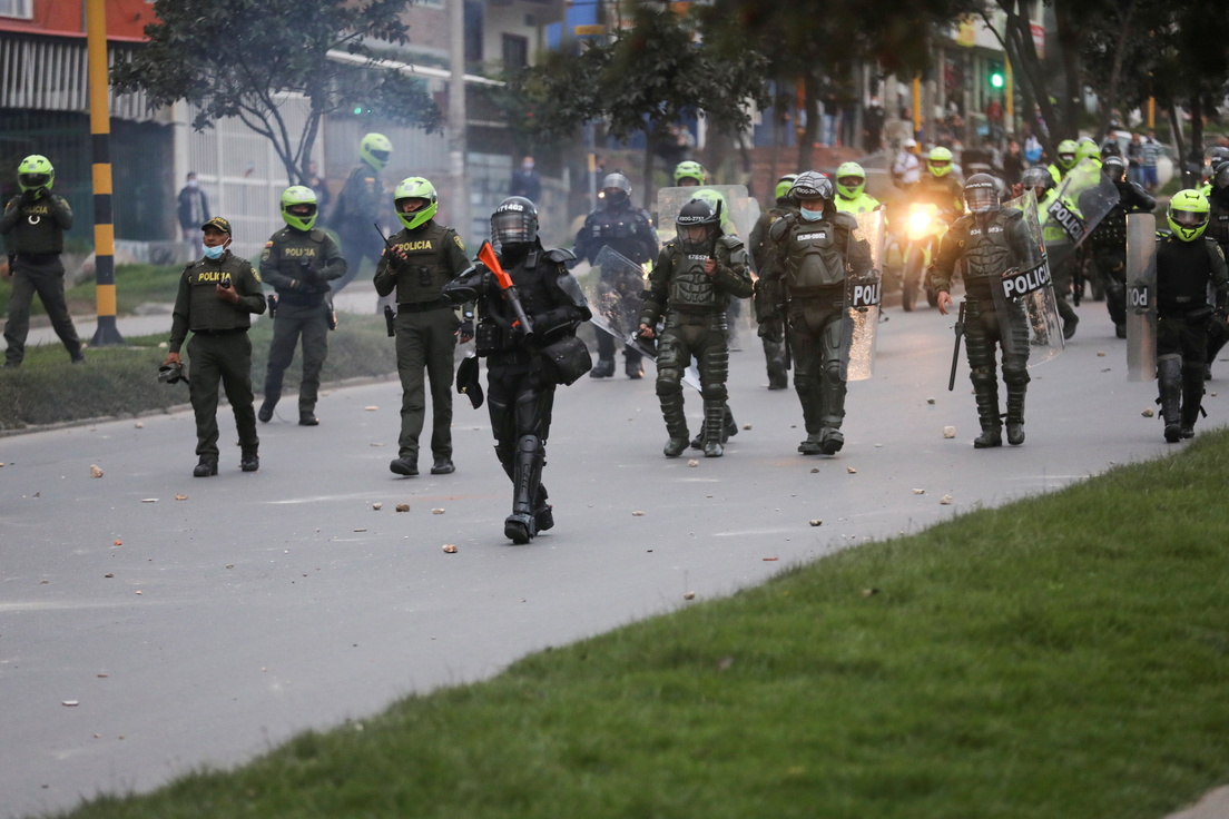 El tema de la seguridad del Estado, además de la contención de las protestas, ha estado en el tapete luego de que se divulgara en el Parlamento que la Policía Nacional tiene abierto un proceso de contratación por casi diez millones de pesos (equivalente a 2,44 millones de dólares) para la compra de municiones no letales para el Escuadrón Móvil Antidisturbios (Esmad), lo que generó agudas críticas entre los congresistas opositores debido a la compleja situación económica del país y el aumento de la pobreza producto de la pandemia. La Policía respondió que esta adquisición estaba prevista desde 2019.